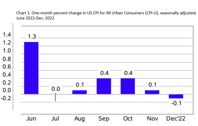 The US 10-year Treasury yield dropped from 4.21% November 7, to 3.39% on January 18, after weak Producer Price Index data and a mild inflation report.  CPI fell 0.6% to 6.5%y/y leading many economists to scale back their inflation forecasts.