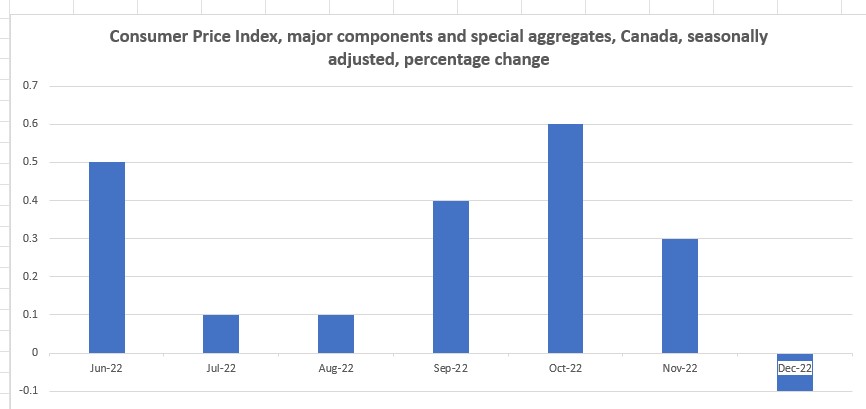 The lower Canadian inflation numbers for December were because of a 13.1% drop in gasoline prices.  West Texas Intermediate (WTI) bottomed out at $70.20/barrel on December 12.  Prices have risen 18% since then, which doesn’t bode well for a lower core -inflation reading for January.