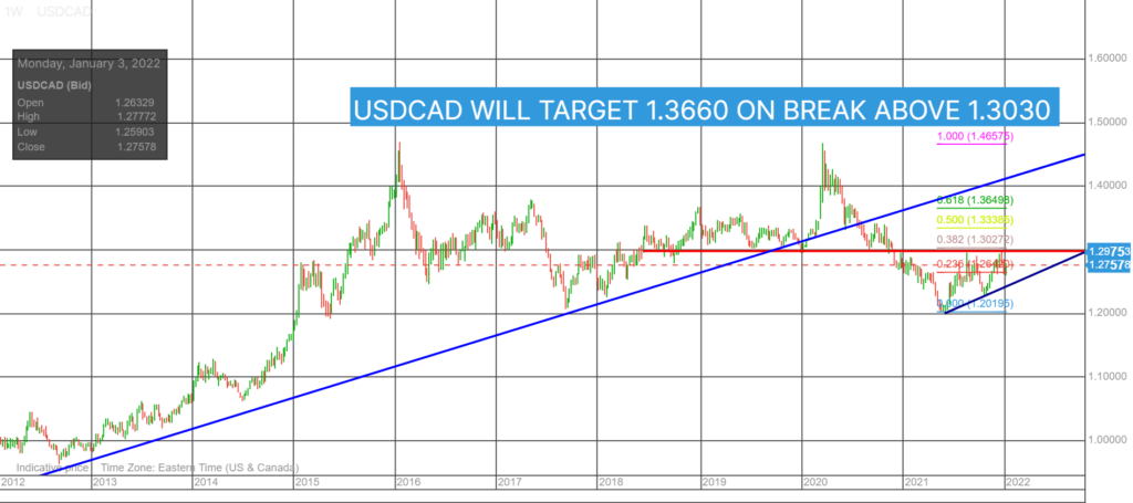 Geopolitical issues: Russia has amassed an army on the Ukraine border in protest of NATO’s buildup of troops and missiles. In China, President Xi Jinping is regressing to the cultural revolution policies of Mao Zedong, and he has designs on Hong Kong and Taiwan. Iran continues to be the nitroglycerin in the Middle East-one bad shake, and everything blows up. The Canadian dollar would go boom as well in a risk aversion sell-off.