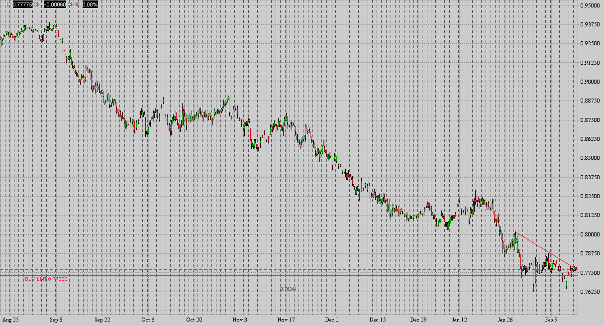 Oz to me seems like a no-brainer.The Aussie dollar has been beaten down over a commodity slump and a rate decrease by the Reserve Bank of Australia in the face of the ECB’s quantitative easing program.But the real clincher has been the price action over the last few weeks.If you Google Aussie currency news, and review the day to day articles, you will get an idea of what I am talking about. It’s enough to give a day-trader whiplash—Aussie dollar fades, Aussie dollar bounces, Aussie dollar beaten down, Aussie dollar rallies…