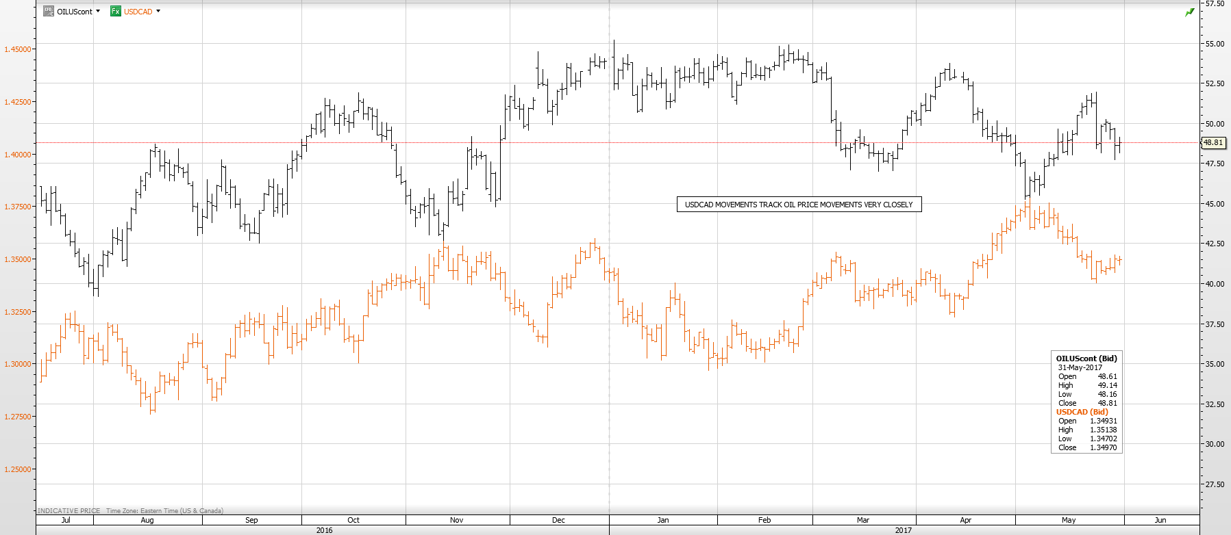 Prices recovered somewhat, on June 1, when the Energy Information Administration reported a 6.4 million barrel decline in US crude inventories. The Canadian dollar will garner some support if prices remain above $46.00/barrel.