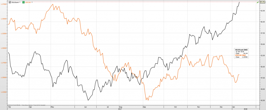 Chart: USDCAD (orange line) and WTI (Black line)