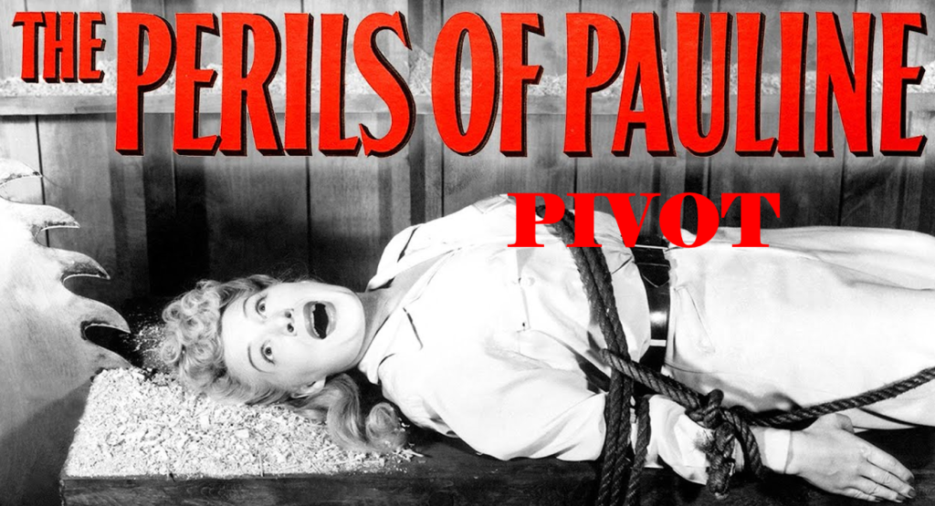 The Perils of Pauline is a remake of an early 20th-century film serial about and wealthy young woman narrowly avoiding death in a series of adventures before she marries and inherits a boat-load of money. The Perils of Pauline Pivot is a similar tale about the pitfalls of premature policy pivots.