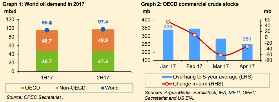 They also expect that the overhang in OECD commercial oil inventories will continue in the 2nd half of 2017 supported by Opec production cuts.