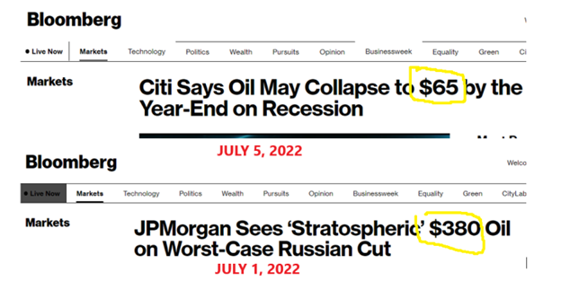 JPMorgan economists disagree. They predict WTI at $380/b under a worst-case scenario which occurs if Russia reacts to western sanctions and cuts its own production by 5 million barrels/day. JPM suggests Russia’s economy would not be excessively damaged, but for the rest of the world, it would be disastrous.