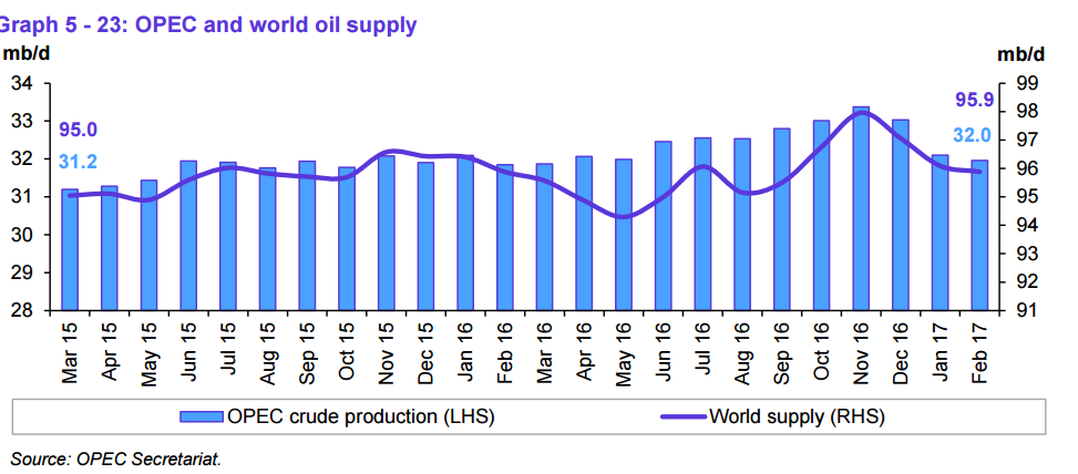 Opec says that World Oil supply decreased in February. Source Opec