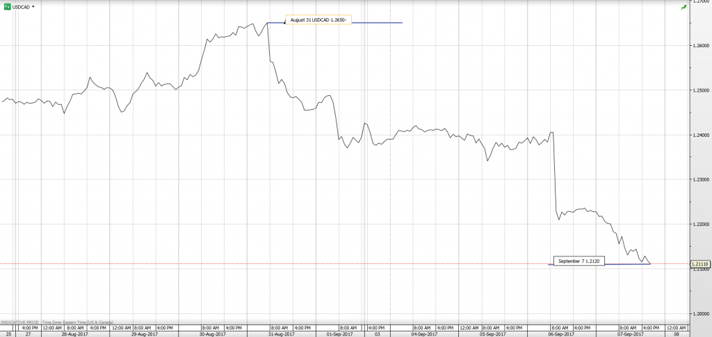 The Canadian dollar rallied ahead of and after the news, gaining 4.25% since the August 31. That is a very large move for a mere ¼ point hike in interest rates which raises questions about how sustainable the move is.