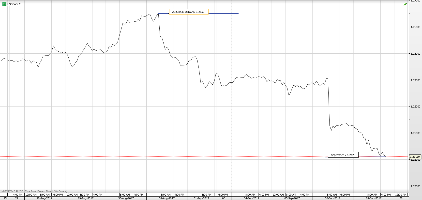The Canadian dollar rallied ahead of and after the news, gaining 4.25% since the August 31. That is a very large move for a mere ¼ point hike in interest rates which raises questions about how sustainable the move is.
