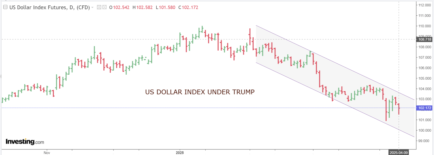 What he doesn’t see is a US depression. Not many do, but it is not impossible. If America’s trade partners are unimpressed with the latest 10% reciprocal tariffs, they are likely to retaliate. That would mean soaring import costs which could squeeze consumers while retaliation guts U.S. exports. Business investment would dry up, layoffs would spike, and credit markets could seize. If the Fed’s hands are tied and fiscal policy stays erratic, confidence collapses. Add a geopolitical shock or a broken supply chain, and you’ve got a long, painful economic nosedive.