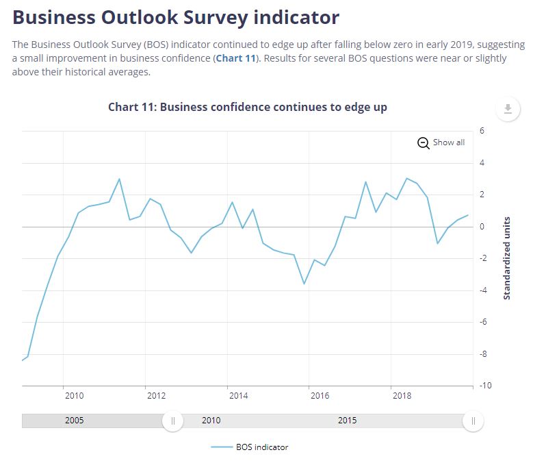 Arguably, saying business sentiment is broadly positive is merely semantics. They could have said it was slightly negative and been just as accurate. A cynic would suggest it is the supposedly politically neutral BoC’s way of supporting the government’s agenda.