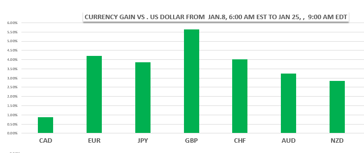 Currency markets certainly thought so. The words were barely out of his mouth when a fresh wave of US dollar selling occurred, intensifying the 2018 slide. The following chart highlights the US dollar losses which began on January 8, the first full week of trading.