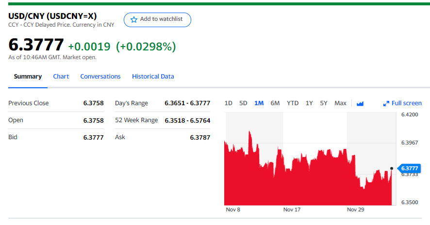 Today’s Bank of China Fix 6.3702, Previous 6.3738