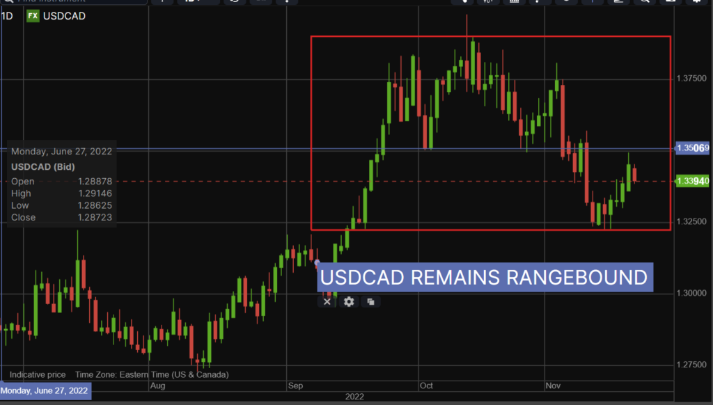 USDCAD popped in the wake of WTI oil prices dropping from $81.93/barrel to $78.42/b. The G7 are discussing a Russian oil price cap of $60-$70 /b.