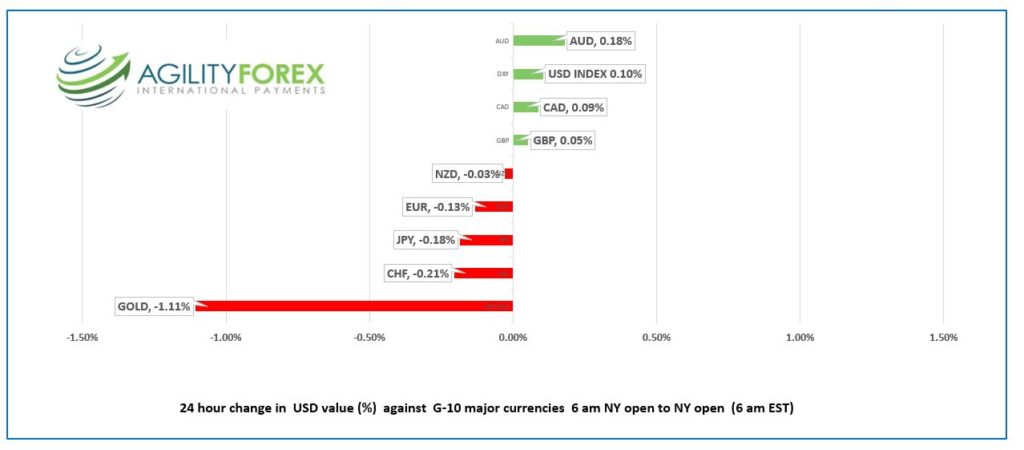 AUDUSD and NZDUSD outperformed as both nations ease coronavirus restrictions. AUDUSD got an added lift from firmer iron ore prices. NZDUSD is underpinned by expectations for the RBNZ to raise interest rates o.25% at Thursday’s monetary policy meeting.