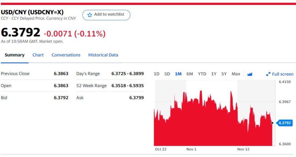 Today’s Bank of China Fix 6.3952 Previous 6.3825