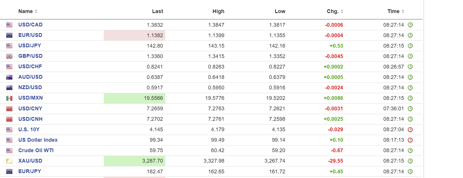 European bourses gave back some of their earlier gains. The German Dax up 0.15% and the French CAC 40 index gained 0.22%. The UK FTSE is treading water and only up 0.10%. S&P 500 futures are down 1.30% as of 8:45 am EDT. Gold (XAUUSD) extended yesterday’s fall from 3314.02 to 3268.57 but has climbed to 3298.50 post US data.