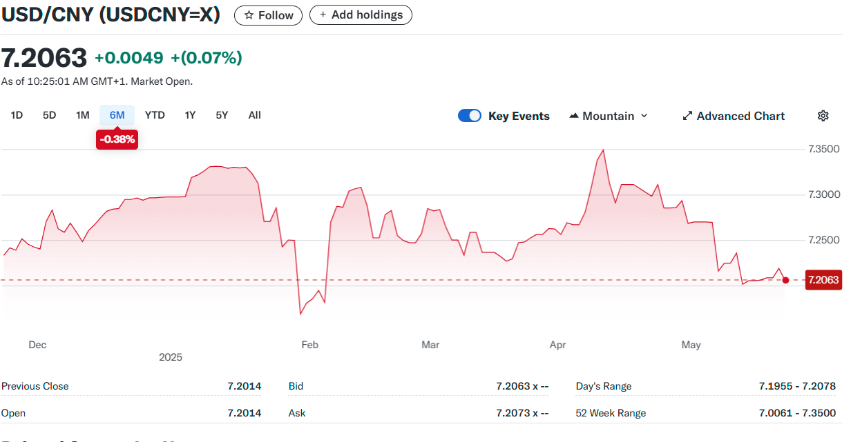 The 10-year Treasury yield climbed from a low of 4.427 on Tuesday to 4.61% yesterday before drifting down to 4.58% in NY. The US dollar index (DXY) has given up most of May’s gains and has fallen from a peak of 101.81 on May 12 to 99.34 yesterday.