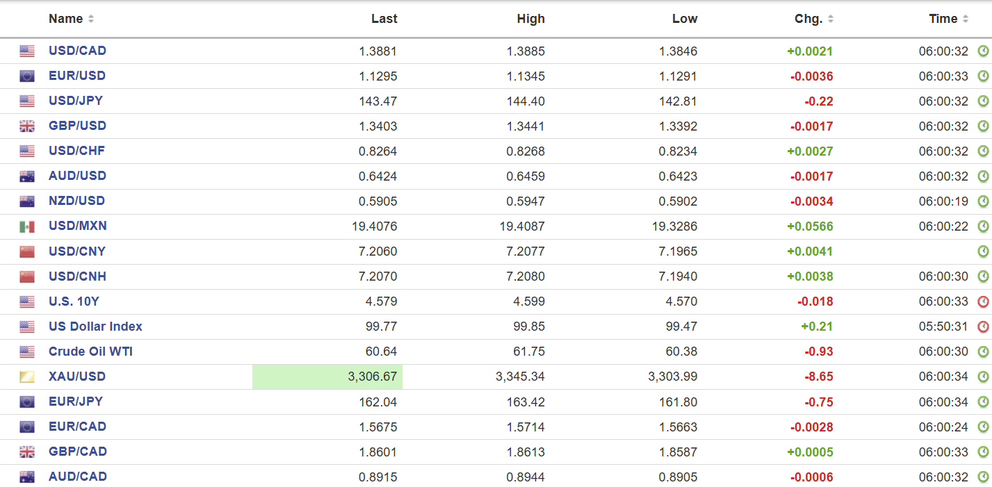 European bourses joined the party with the French CAC 40 index down 0.95% and the German Dax down 0.87%. S&P 500 futures are the outlier and have gained 0.15% as of 6:20 am ET. Gold (XAUUSD) saw some profit-taking and has erased all of yesterday’s gains, falling from 3345.34 to 3292.06 in NY.