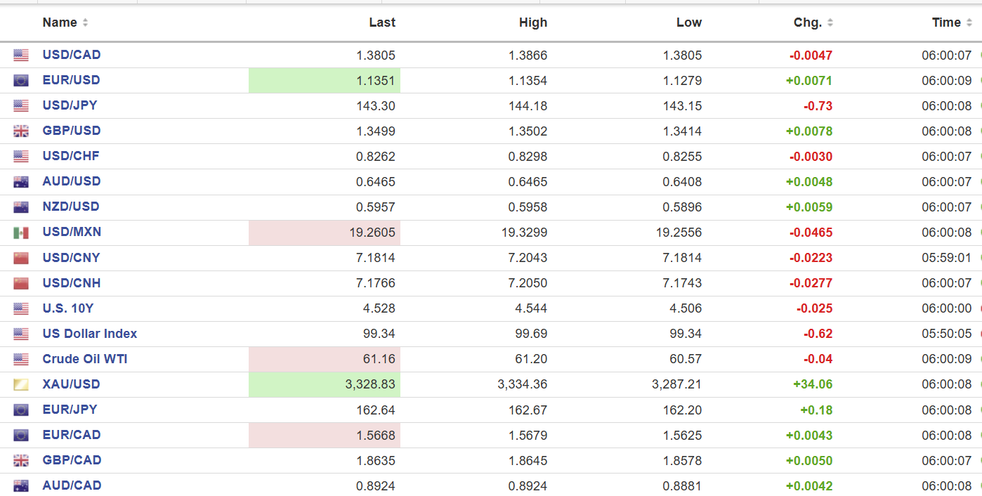 European bourses were treading water until Trump tweeted. Then all hell broke lose. The French CAC-40 is down 1.64% while the German Dax is up 1.115%. S&P 500 futures went from flat to down 1.53% as of 5:15 PT. and the US 10-year Treasury yield is steady at 4.524%. Gold (XAUUSD) gained $35 and is 3329.00.