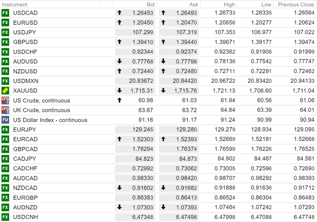 FX open (6:00 am EDT) High, Low, and previous close