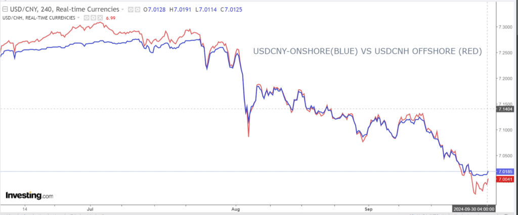 The surge in the US 10-year Treasury yield from 3.70% on October 1 to 4.02% overnight has not put a damper on the enthusiasm for equities. Lingering positive sentiment from the previous Chinese fiscal and monetary stimulus continued to support Asian stock indexes. Hong Kong’s Hang Seng rose 1.60%, while the free-falling yen helped lift Japan’s Topix to a 1.68% gain. European bourses are mixed. The UK FTSE 100 is up 0.28%, while weak German data helped drive the German DAX down 0.24%. S&P Futures are down 0.47%.