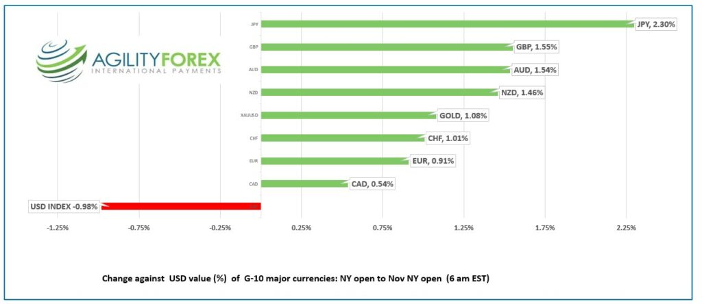 The result was that Wall Street rallied and the US dollar sank.  Oil prices plunged the fall was exacerbated by rising Covid cases in China.