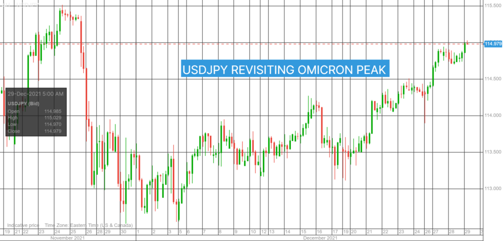 Omicron news dominates the headlines with cases soaring worldwide. However, “studies” suggesting that Omicron is less severe than Delta, combined with pandemic fatigue, suggests traders are less concerned with this outbreak, at least those that haven’t been infected.