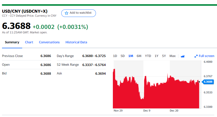 Chart: USDCNY 1 month