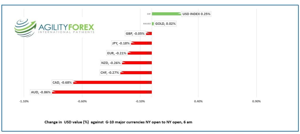 AUDUSD dropped to 0.6813 from 0.6864 due to weak wage growth data easing fears of aggressive RBA rate hikes and by and broad US dollar strength.