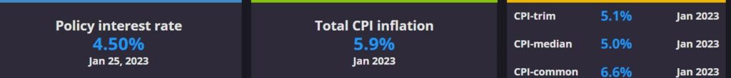 NZDUSD traded between 0.6208 and 0.6250 due to the perception the RBNZ is more hawkish than expected, following the 50 bp rate hike. The Overnight Cash Rate (OCR) is 4.75% and analysts are forecasting further hikes to 5.50%. The RBNZ ignored said it was too early to assess the impact of Cyclone Gabrielle on monetary policy.