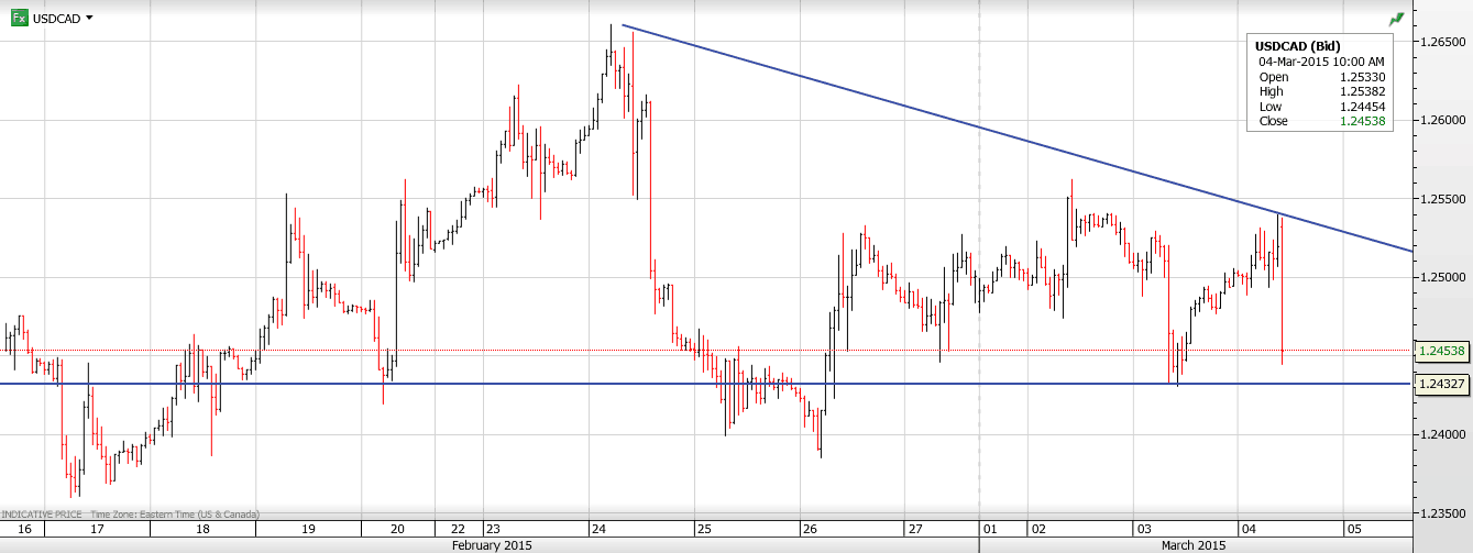 The Bank of Canada lefts rates unchanged but the USDCAD rate changed and changed quickly. It was comfortably bid at 1.2520 prior to the news and quickly dropped to 1.2450. The BoC stated ”Financial conditions in Canada have eased materially since January, in response to the Bank’s recent monetary policy action and to global financial developments. This easing is reflected across the yield curve and in a wide range of asset prices, including the Canadian dollar. These conditions will mitigate the negative effects of the oil price shock, further boosting growth through stronger non-energy exports and investment.”