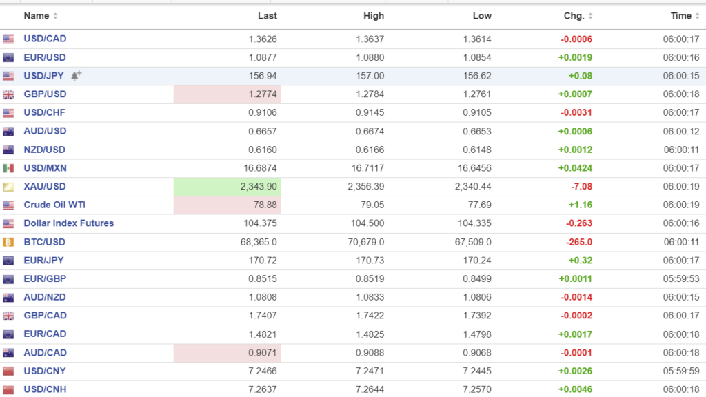 FX high, low, open (as of 6:00 am ET)