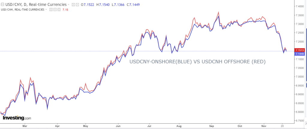 Chart: USDCNY (onshore) vs USDCNH (offshore)