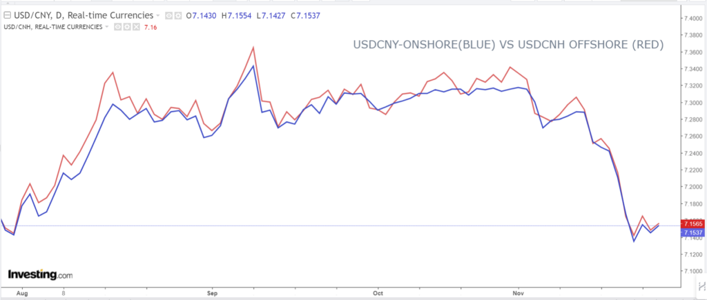 Chart: USDCNY (onshore) vs USDCNH (offshore)