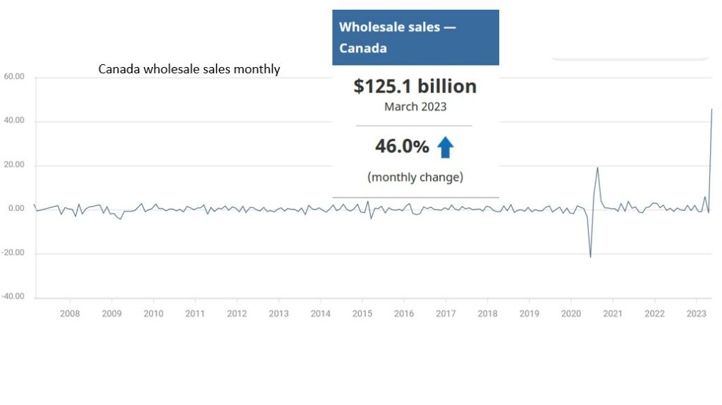 Canada Wholesale Sales rise 46% m/m (forecast -0.4%) which suggests something is dodgy with the data