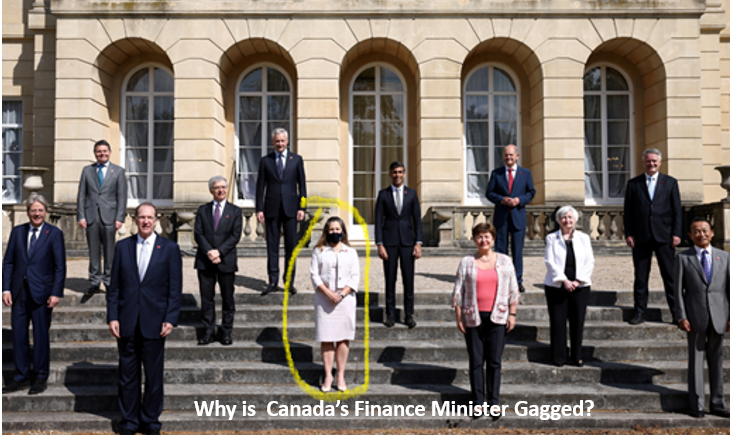 Sharp-eyed observers looked at the official G-7 Finance Minister photo and wondered if Canada’s Finance Minister received special treatment. Did Ms Freeland repeat Justin Trudeau’s comment that “budgets balance themselves?”
