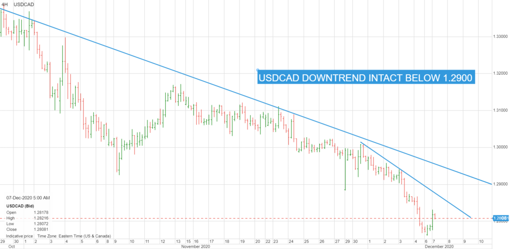 FX analysts are suggesting that USDCAD will continue to slide due to a) high correlation with US equites, b) surge in commodity prices, including copper 3) firm crude oil prices which are underpinned by plans for a modest Opec production increase 4) expectations for a global economic boom in 2021 with Canada GDP to rise 5.5% in 2021 helped by addition fiscal stimulus 5) reduced geopolitical tensions under Joe Biden. Massive government deficits, and inflation risks are not much of a concern. In that environment, USDCAD will continue to attract selling interest on rallies.