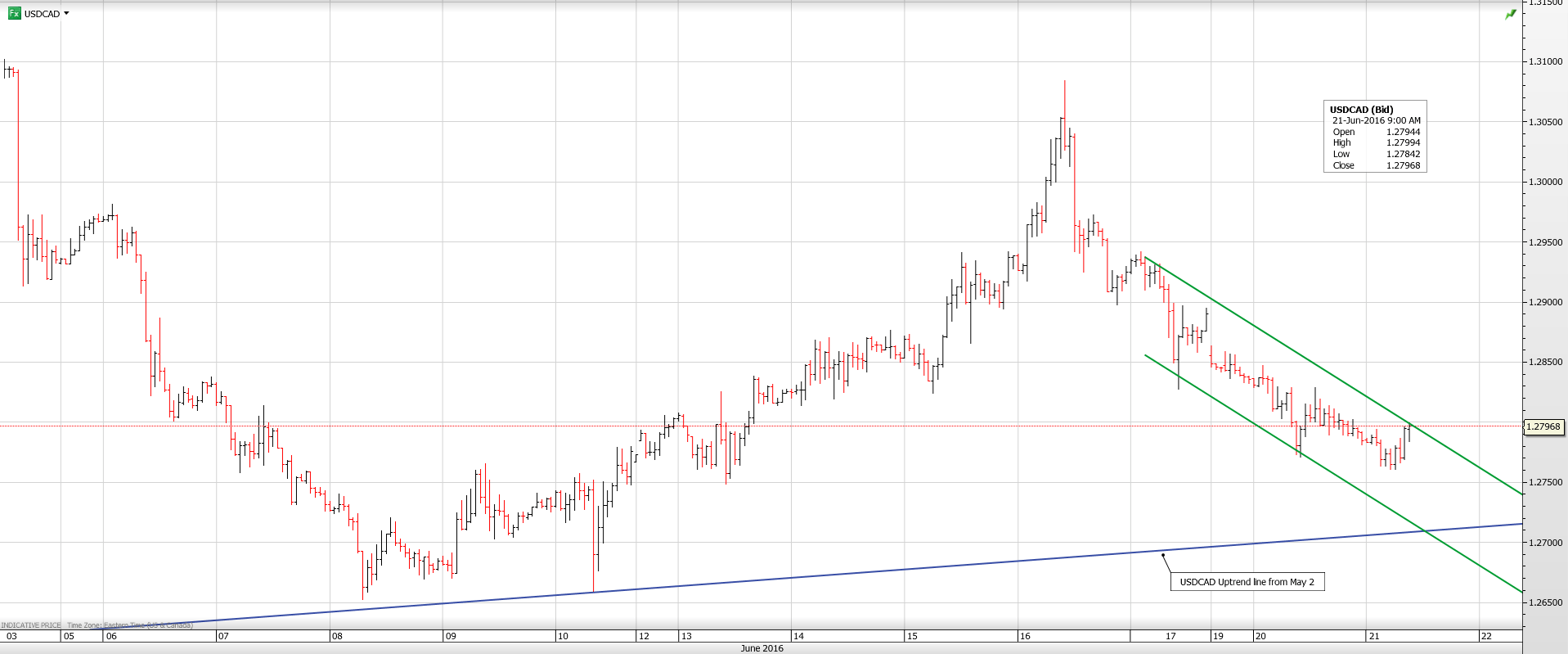 USDCAD trading will be driven by risk sentiment and oil prices.  The approach of the Brexit vote may lead to subdued volumes and narrow ranges