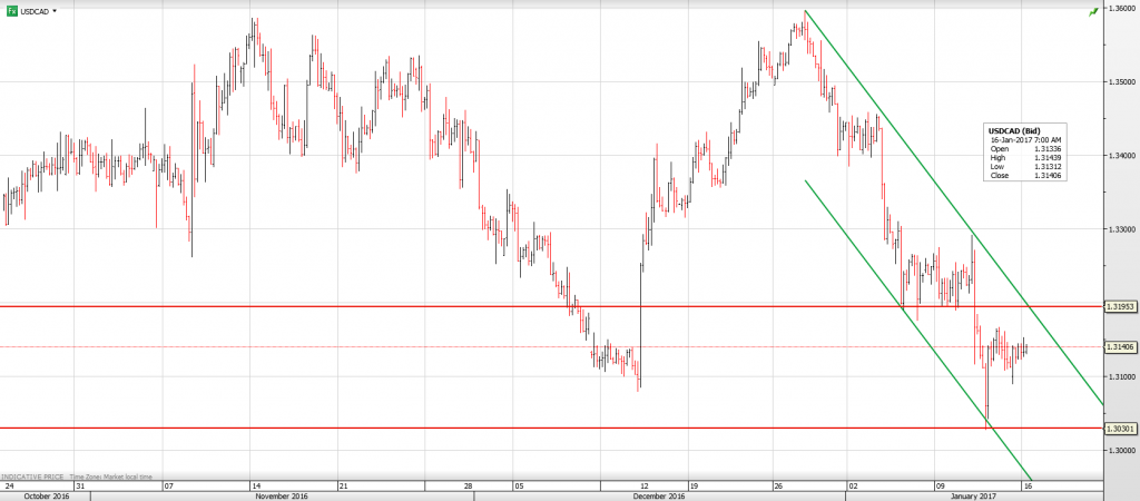 It should be a very quiet day in FX markets due to the US holiday. It is Martin Luther King Day and all US financial markets are closed. Sterling traders will be listening closely to Bank of England Governors Mark Carney’s speech especially as it follows the weekend reports of a rather aggressive UK/EU Brexit negotiation. USDCAD traders will use Wednesday’s Bank of Canada policy meeting as an excuse to remain idle.