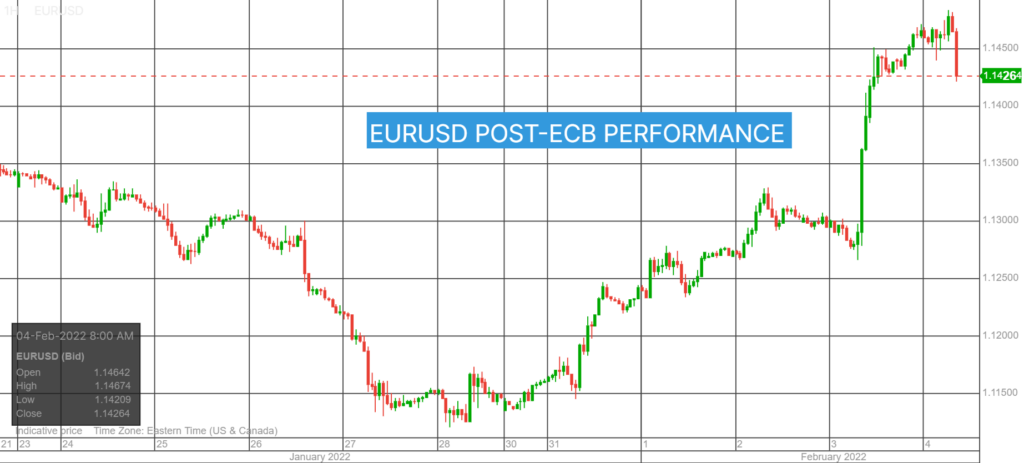 EURUSD is on a tear, rising from 1.1268 pre-ECB press conference to 1.1483 in NY this morning. The outlook from the monetary policy statement and Lagarde’s press conference was as different as night and day. The statement was nearly identical to Decembers, but during her presser, Ms. Lagarde signaled a hawkish shift which pundits took to mean a rate hike in 2022. The EURUSD technicals are bullish above 1.1370 with a break above 1.1500 targeting 1.1620.