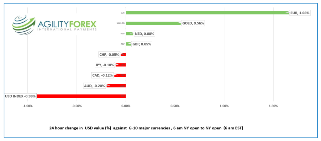 FX open, high, low, previous close as of 6:00 am ET