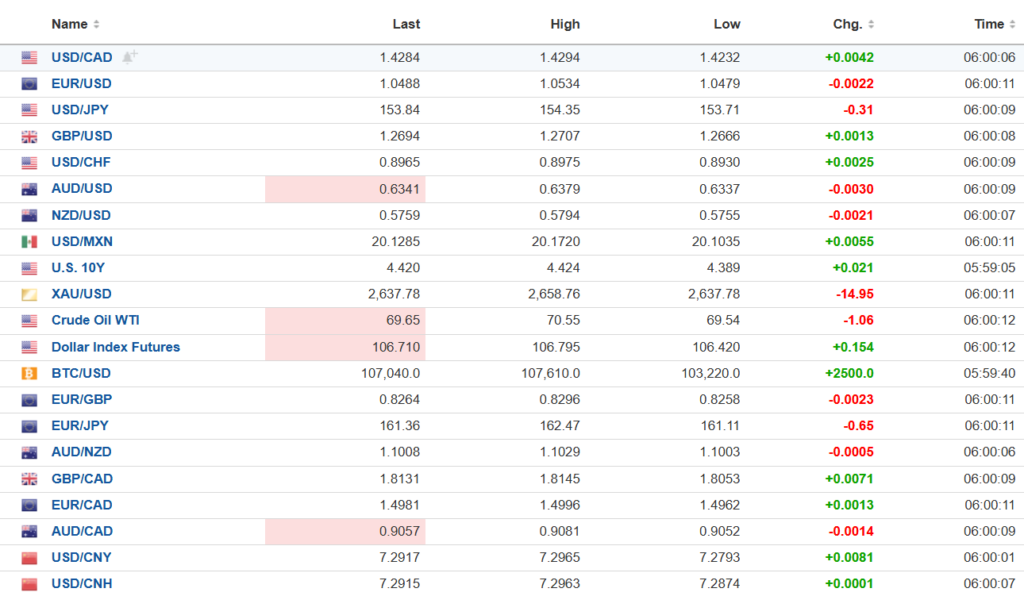 FX high, low, open (as of 6:00 am ET)