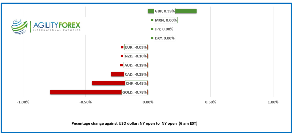 - USD opens little changed-CAD falls 0.29%.