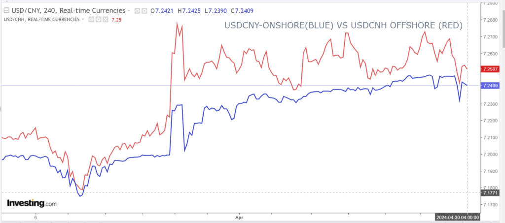 The quarterly employment cost index jumped to 1.2% from 0.9% previously. Fed Chair Jerome Powell relatedly said that policymakers need more confidence that inflation is steadily which will not help the Fed or Chair Jerome Powell’s confidence that inflation is steadily falling. Today’s data does not improve the confidence one iota. The results gave the US dollar a boost and lifted the US 10-year yield to 4.66% from 4.626% at the open. S&P 500 futures added to its losses and are down 0.41%, while gold (XAUUSD) dropped from an overnight peak of 2336.23 to 2304.77.