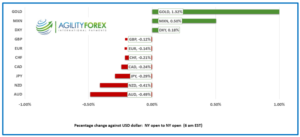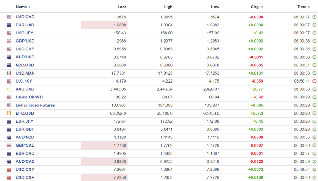 AUDUSD drifted lower in a 0.6718-0.6765 range on the back of broad, but mild US dollar strength because of fears of new tariffs if Trump wins. NZDUSD is in the middle of its 0.6043-0.6880 range with traders sidelined ahead of tomorrow’s NZ inflation data.