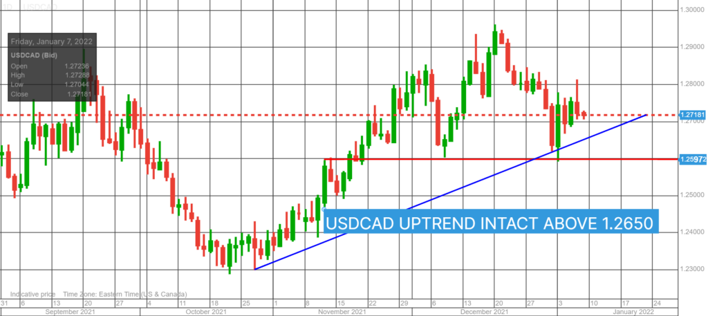 USDCAD direction will be driven by broad US dollar moves, post NFP. Trading may get choppy around the 10:00 am option expiry window as, reportedly, $1.4 billion of 1.2680-1.2700 option strikes mature.