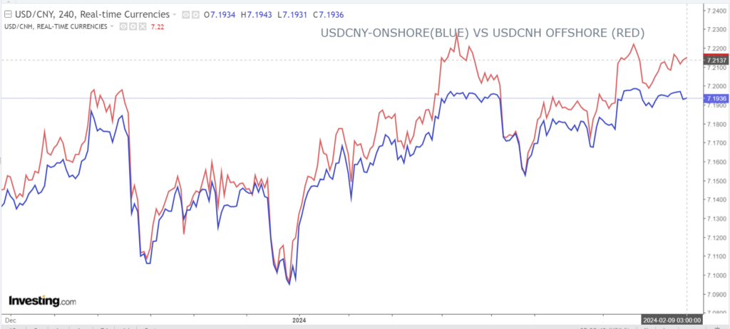 Chart: USDCNY and USDCNH 4 hour.