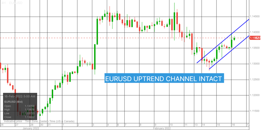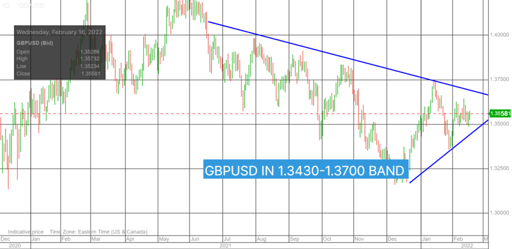 GBPUSD stayed in its overnight 1.3534-1.3573 range following the US data. Prices are underpinned after UK inflation reached a 30 year peak of 5.5% y/y in January compared to5.4% y/y in December. Headline and core PPI along with the Retail Price Index, were also better than forecast reinforcing calls for a series of BoE rate hikes in 2022.