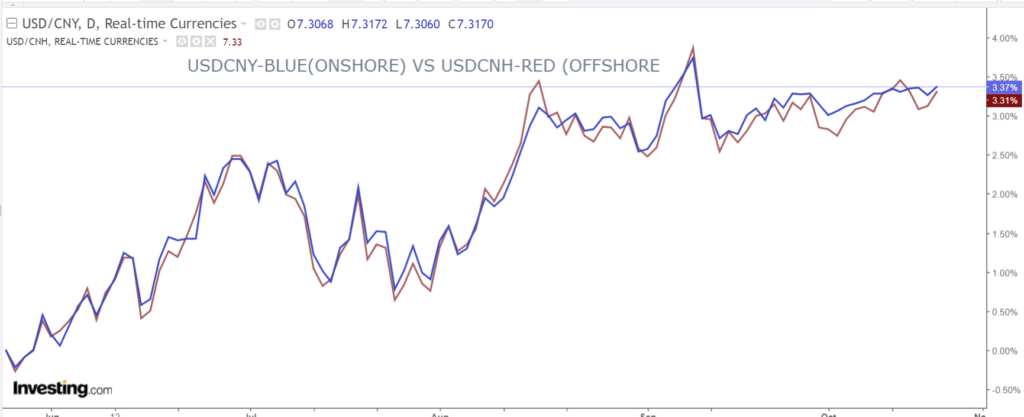 Chart: USDCNY (onshore) vs USDCNH (offshore)