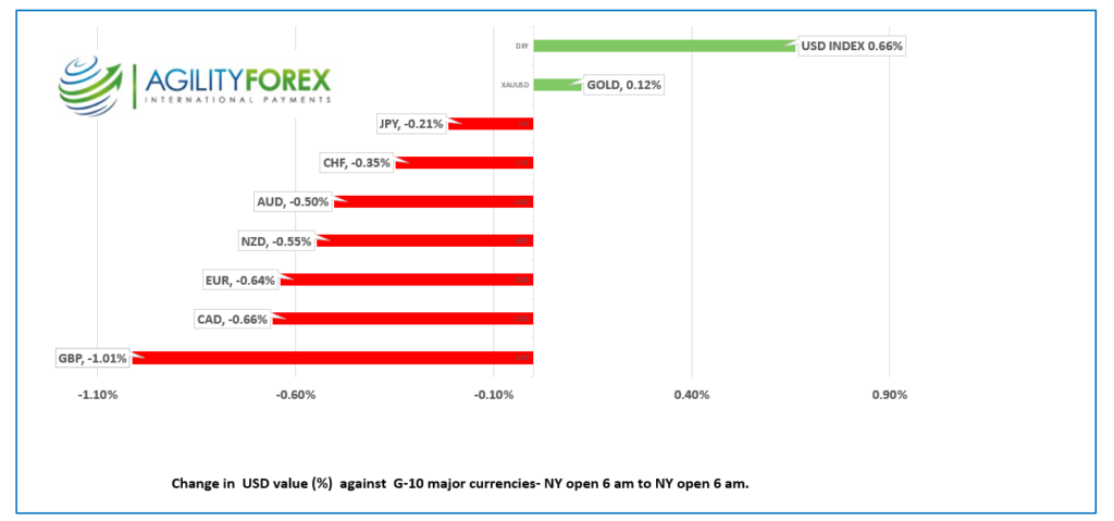 The US dollar caught a bid yesterday and rallied hard, although there were no specific catalysts to explain the sudden move. It could have been sparked by relief from the apparent ceasefire in the US Republican Party’s war with itself. The GOP may have found a palatable candidate for Speaker of the House which, if so, reduces the risk of a government shutdown in November. It could have been triggered by weak European and UK PMI data, underscoring the growing economic divergence with the US. It could have been because the 10-year US Treasury yield found a bit of a floor in the 4.80% area. In addition, headlines may have raised fears that Western nations will get sucked into a Middle East war against Iran and its proxy terrorist groups. Or the rally could have been due to a combination of the above.